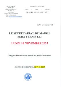 INFO MAIRIE : FERMETURE DU SECRETARIAT