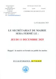 INFO MAIRIE : FERMETURE DU SECRETARIAT