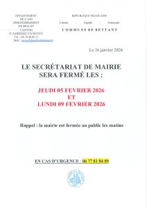 INFO MAIRIE : FERMETURE DU SECRETARIAT